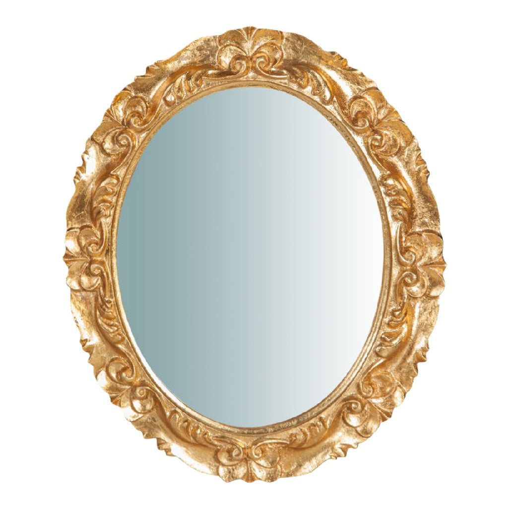 Espejo decorativo ovalado estilo barroco, marco dorado tallado, para pared